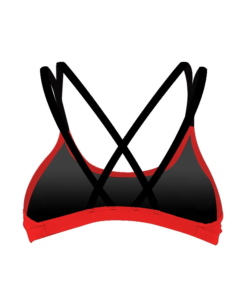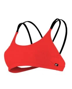 Haut de maillot de bain rose passion avec double bretelles noires, doublure anthracite.