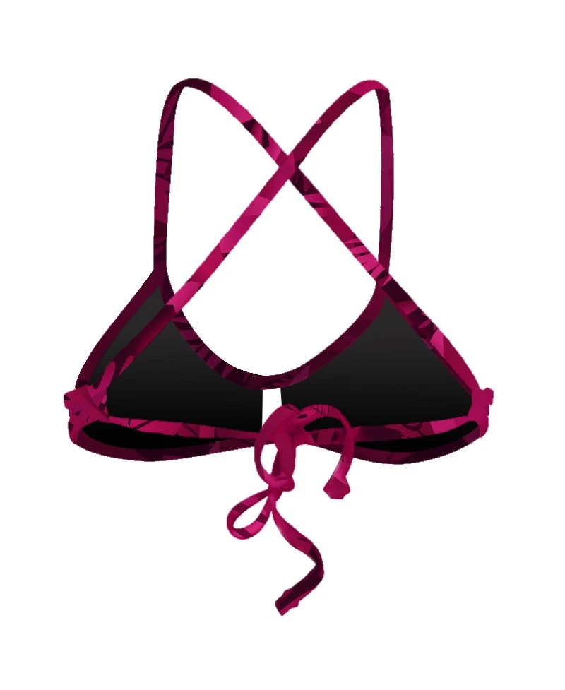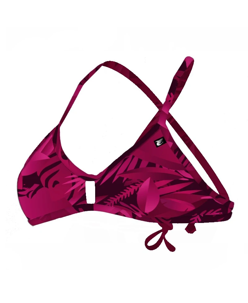 Laissez-vous tenter par l’univers tropical de ce haut de maillot de bain Leaves Forest aux couleurs rose cerise avec le dos noué imprimé, doublure noire.