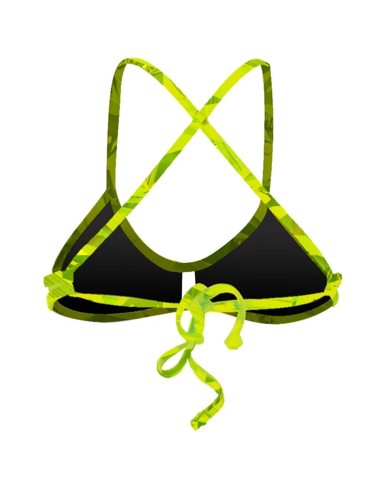 Un petit air de tropique avec ce haut de maillot de bain Primeval aux couleurs vert citron avec avec le dos noué imprimé, doublure noire.