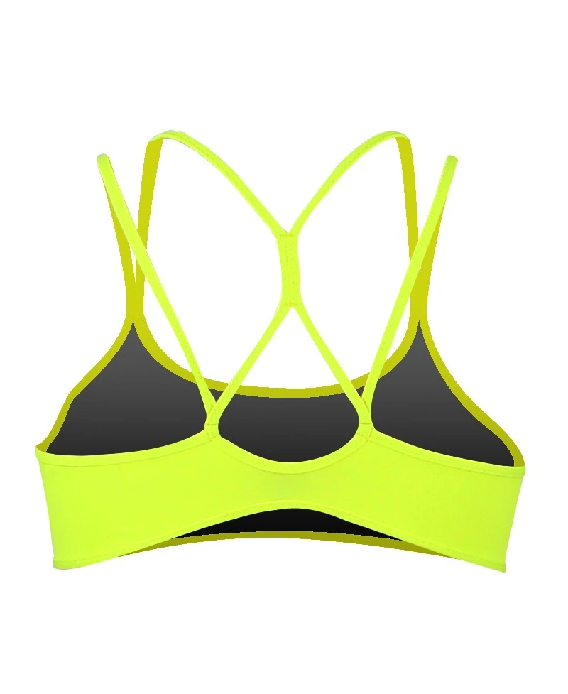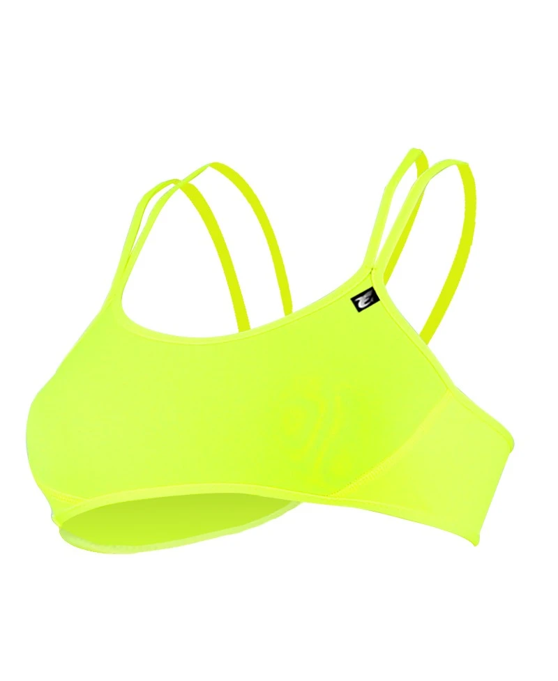 Haut de maillot de bain avec double bretelles jaune fluo, doublure anthracite.